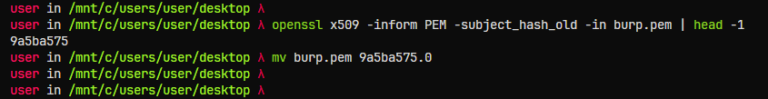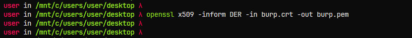 Next, you need to convert the Burp Suite certificate into PEM format.