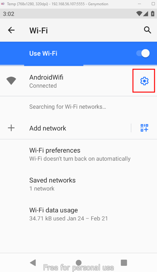 Next, open WiFi settings in Emulator, click the settings icon, then tap the pencil icon to edit the connection.